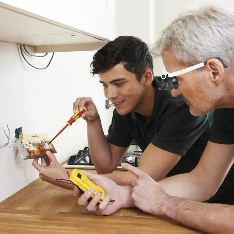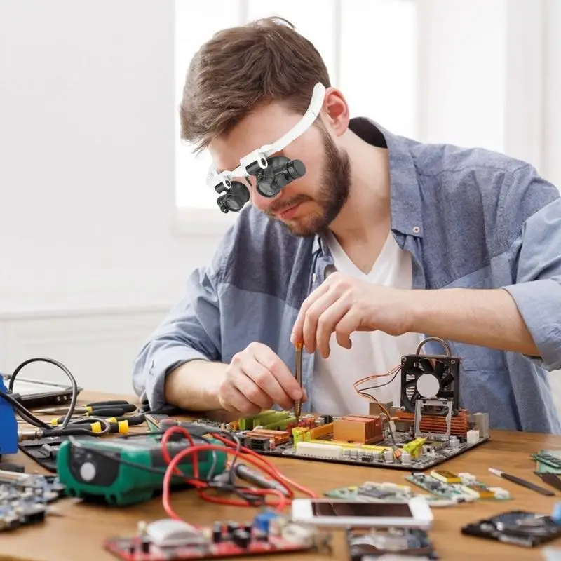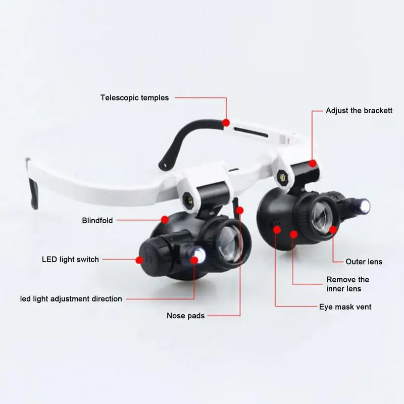 משקפי מיקרוסקופ עם שלוש עדשות ותאורת LED, מושלמים לתיקוני שעונים, תכשיטים ותחביבים יצירתיים שדורשים דיוק גבוה.